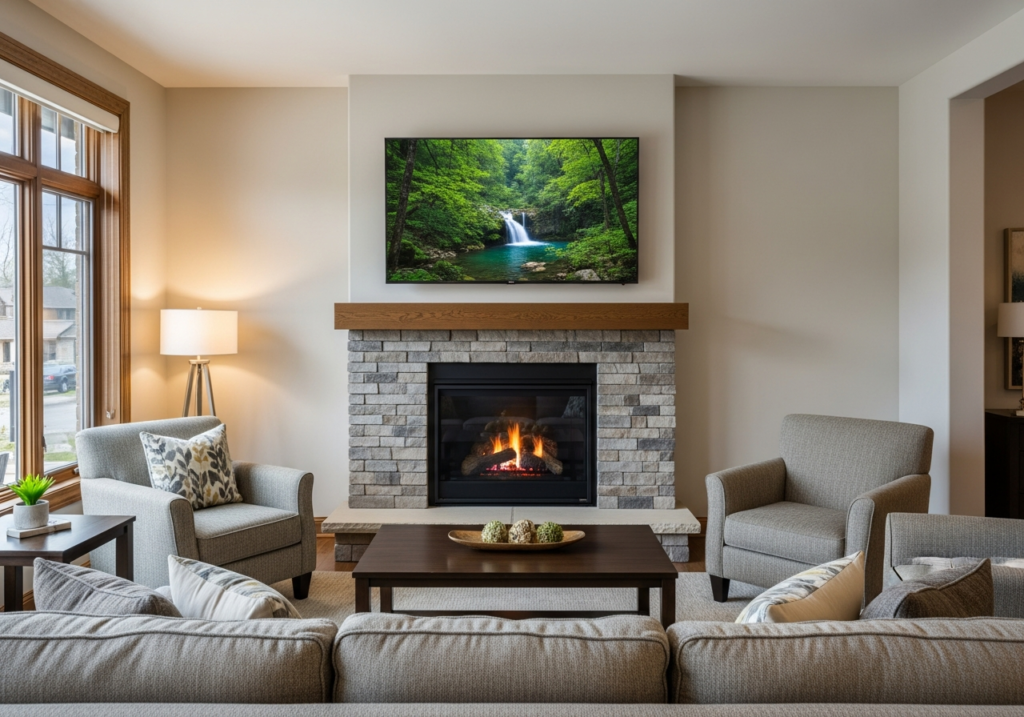 You’ve seen it in countless home design photos and probably considered it yourself. A sleek TV mounted above the fireplace is the perfect solution for your living room layout. It saves wall space, creates a focal point, and looks clean and modern.