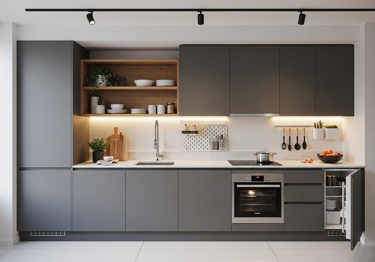 Small kitchens demand smart solutions. The one-wall kitchen layout delivers exactly that—a streamlined design that packs everything you need into a single wall while keeping your space open and functional.