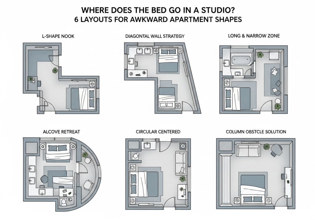 Where Does the Bed Go in a Studio? 6 Layouts for Awkward Apartment Shapes